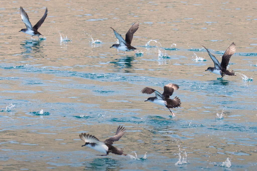 - Vol planer i prop de l’aigua – Normalment segueixen la barca, volant baix i fregant la superfície de l’aigua amb les ales lleugerament arquejades.
